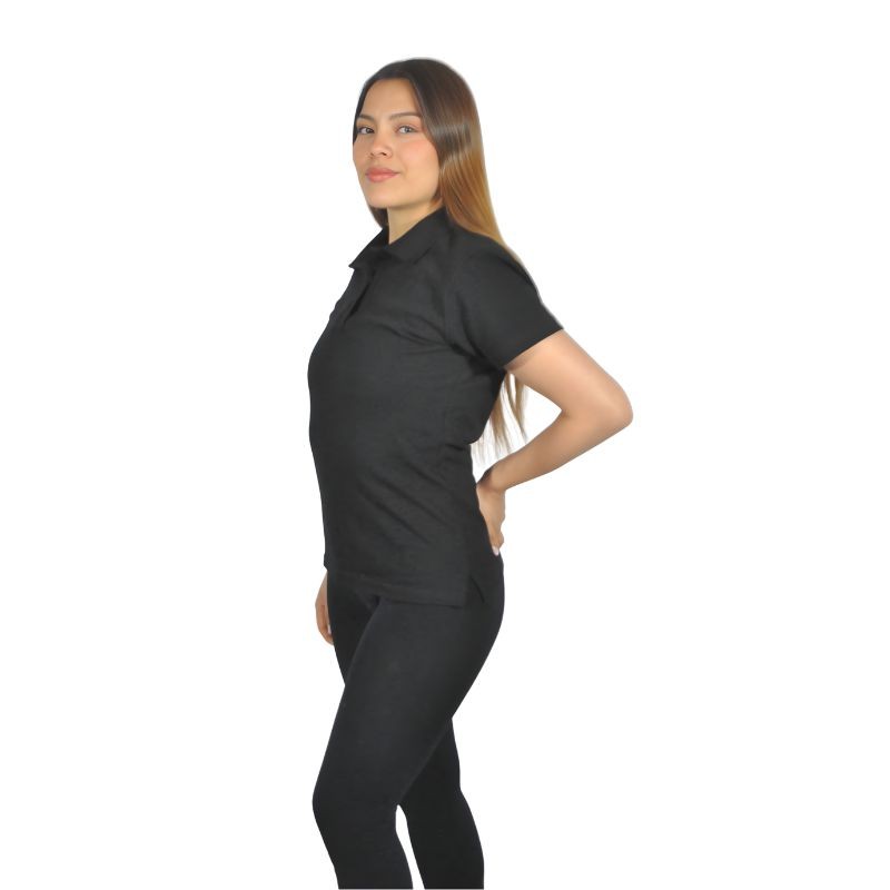 Camiseta Tipo polo; 100% Algodón tejido lacoste con cuello y puños en Rib, posee dos o tres en la parte superior delantera para ampliar la abertura del cuello.