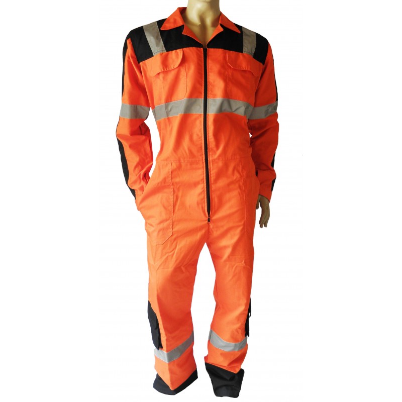 Overol enterizo manga larga seis bolsillos; tipo parche en pantalón y con cierre en cremallera en el pecho.